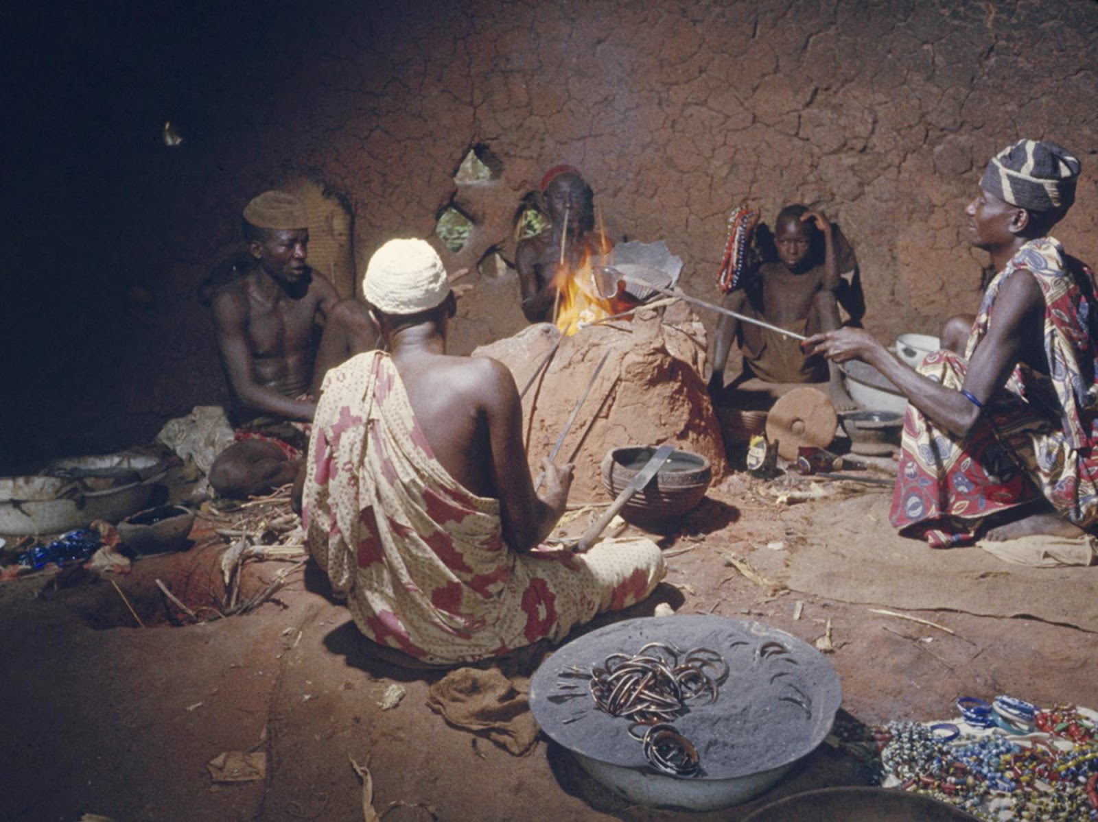 Although the study of the beads themselves in typologies, the study of the production process, the material they are produced with and the bead trade is not the focus of this website, we did decide to show some images of aspects of bead production. On this page the workshops of bead makers can be seen, as well as the installations and ovens in the production of glass beads.